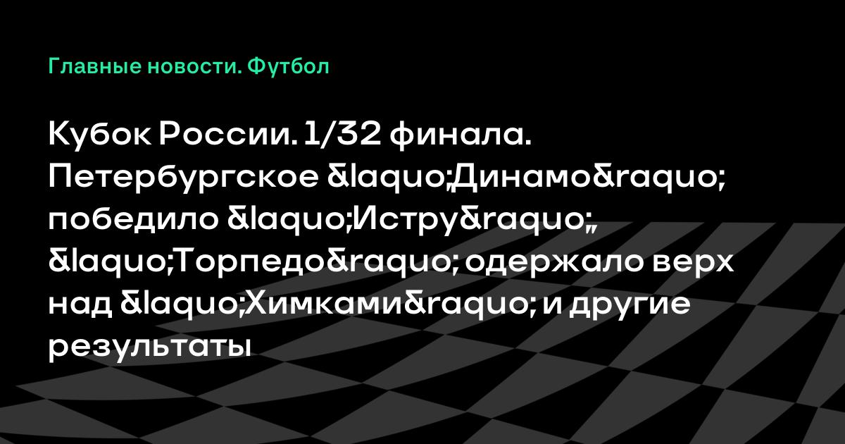 Кубок России. 1/32 финала. Петербургское «Динамо» победило «Истру», «Торпедо» одержало верх над «Химками» и другие результаты