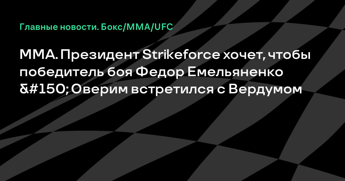 MMA. Президент Strikeforce хочет, чтобы победитель боя Федор Емельяненко Оверим встретился с Вердумом