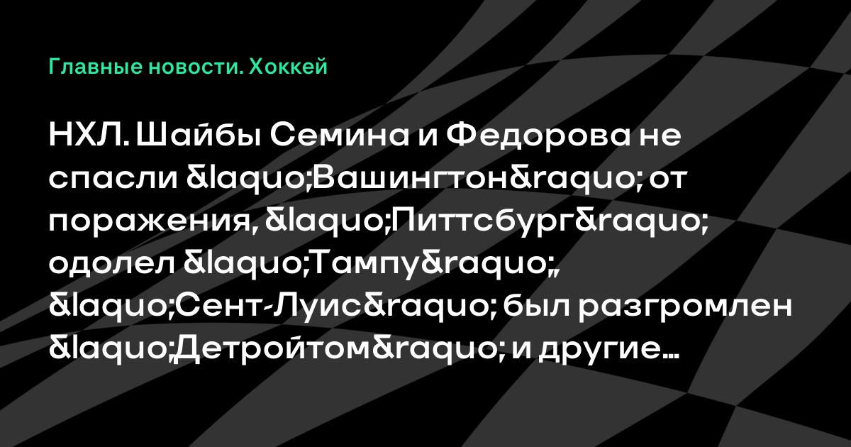 НХЛ. Шайбы Семина и Федорова не спасли «Вашингтон» от поражения, «Питтсбург» одолел «Тампу», «Сент-Луис» был разгромлен «Детройтом» и другие результаты