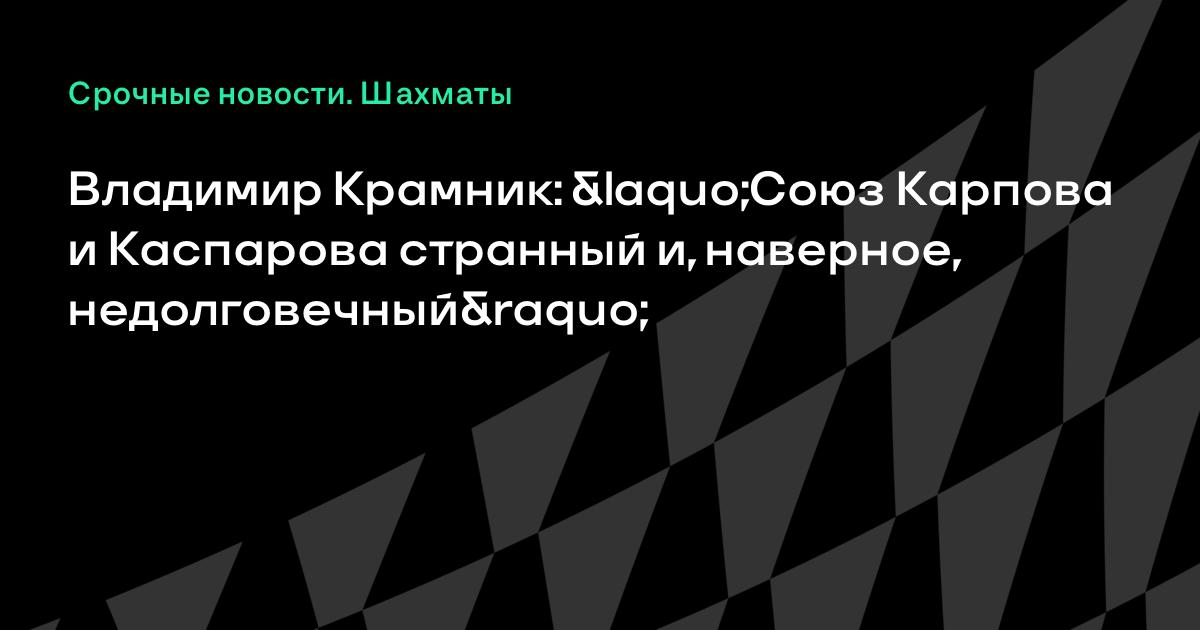 Владимир Крамник: «Союз Карпова и Каспарова странный и, наверное, недолговечный»