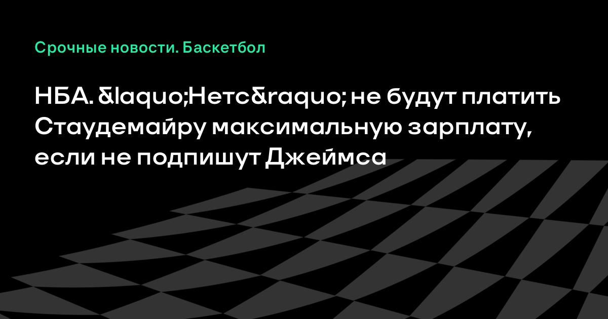 НБА. «Нетс» не будут платить Стаудемайру максимальную зарплату, если не подпишут Джеймса