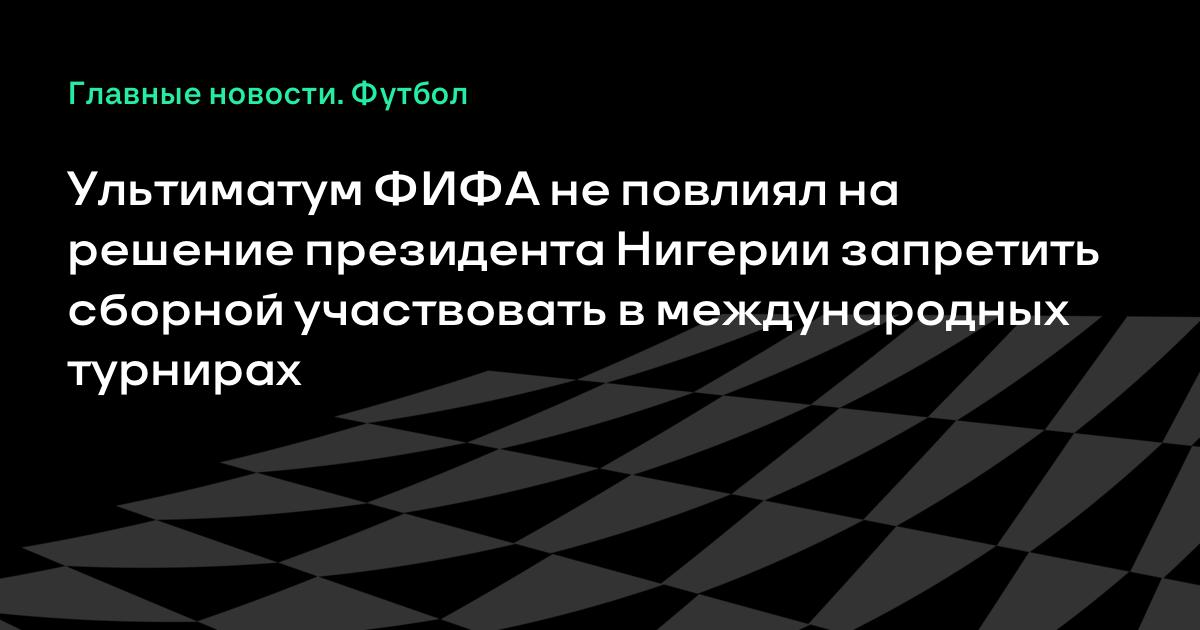 Напомним, что 2 июня Международная федерация футбола поставила нигерийскому руководству ультиматум, потребовав отменить решение в течение двух суток. В противном случае ФИФА угрожает дисквалифицировать сборные Нигерии всех возрастов, местные клубы и арбитров от участия в международных турнирах.