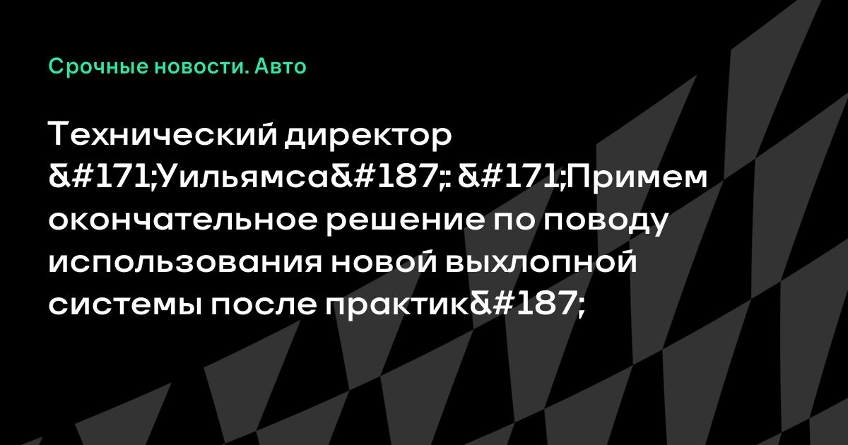 Технический директор «Уильямса»: «Примем окончательное решение по поводу использования новой выхлопной системы после практик»