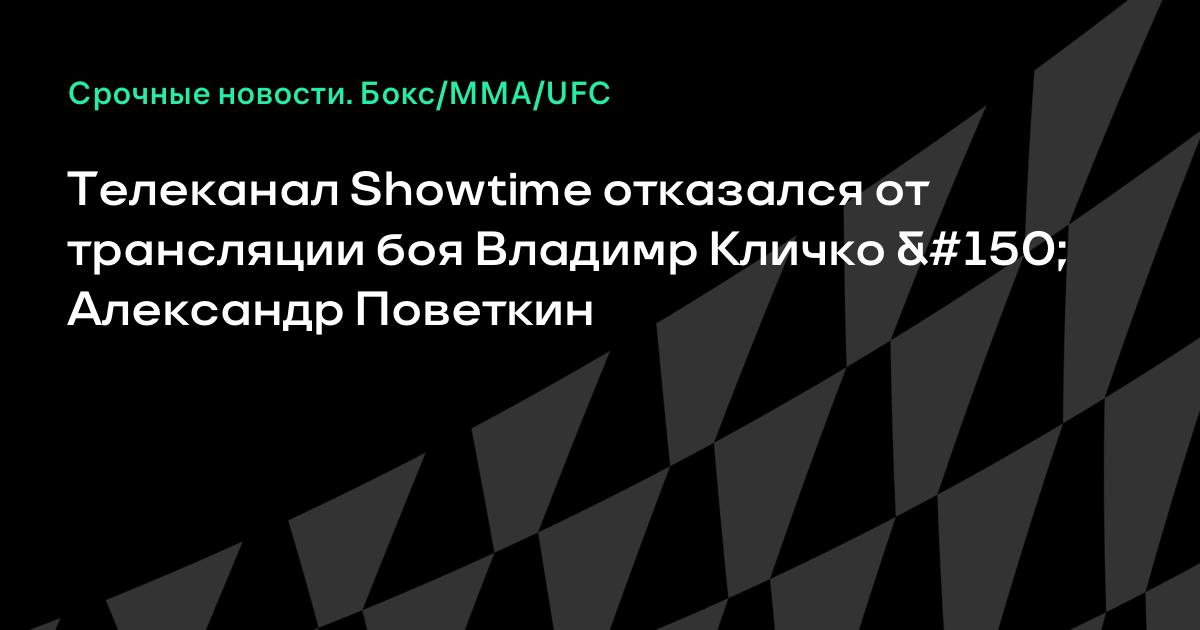 Американский телеканал Showtime не будет транслировать поединок между чемпионом мира в супертяжелом весе по версиям IBF/WBO/IBO украинцем Владимиром Кличко и обязательным претендентом на титул IBF россиянином Александром Поветкиным. Такое решение было принято после того как стало известно о переносе даты боя с 18 сентября на 11 сентября, сообщает Boxingscene.com.
