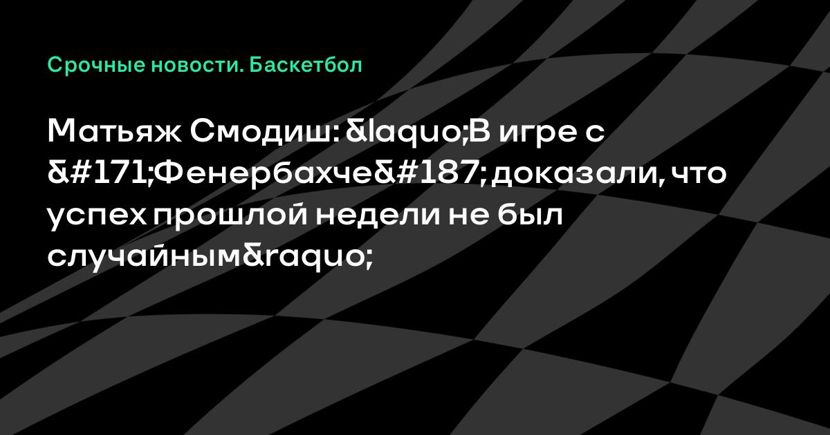 Форвард ЦСКА Матьяж Смодиш после матча 5-го тура Топ-16 Евролиги против турецкого «Фенербахче-Улкера» (77:60) отметил важность выигрыша, позволившего армейцам выйти в плей-офф.