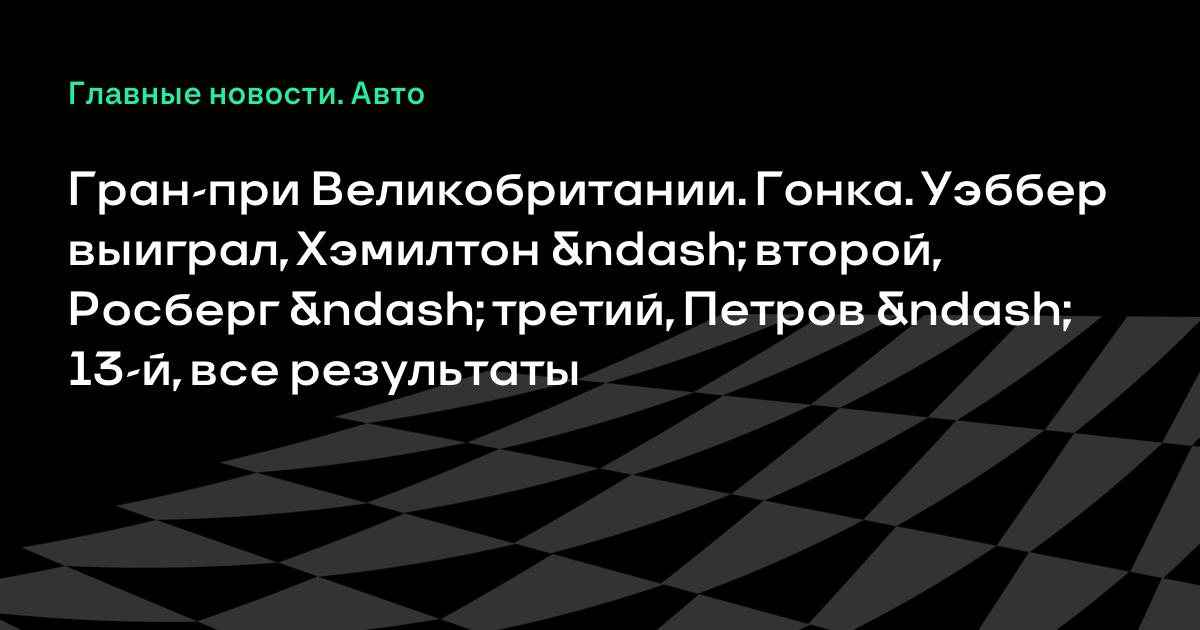 Гран-при Великобритании. Гонка. Уэббер выиграл, Хэмилтон – второй, Росберг – третий, Петров – 13-й, все результаты