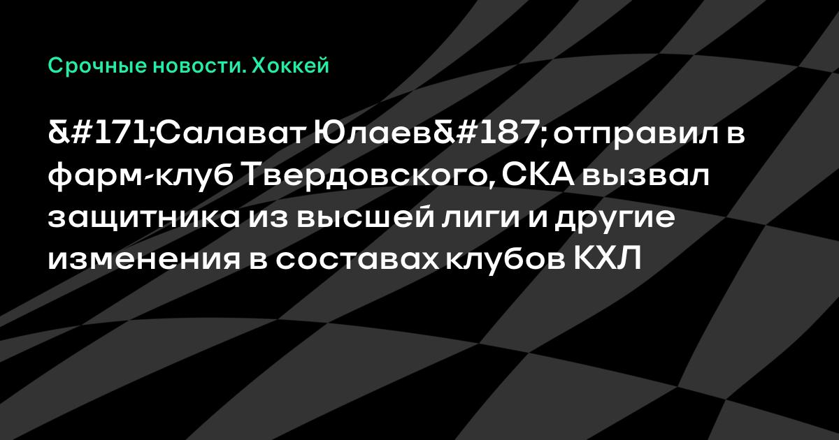«Салават Юлаев» отправил в фарм-клуб Твердовского, СКА вызвал защитника из высшей лиги и другие изменения в составах клубов КХЛ