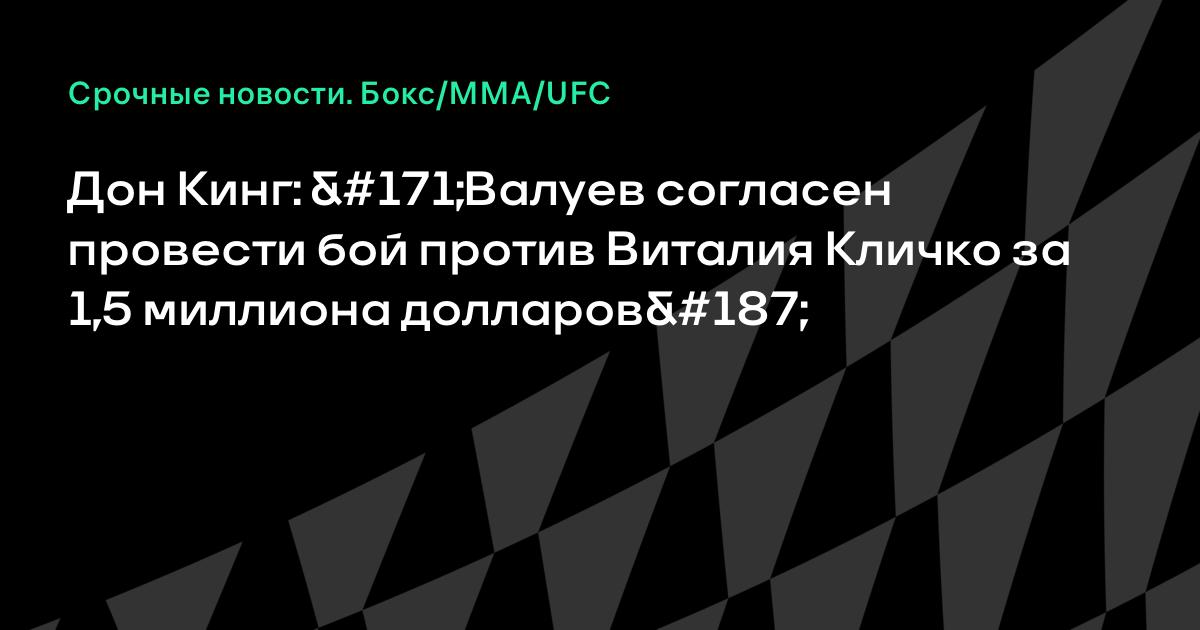 Дон Кинг, промоутер Николая Валуева, признался, что готов принять финансовые условия Виталия Кличко, который предлагает за бой против российского супертяжеловеса 1,5 млн долларов.