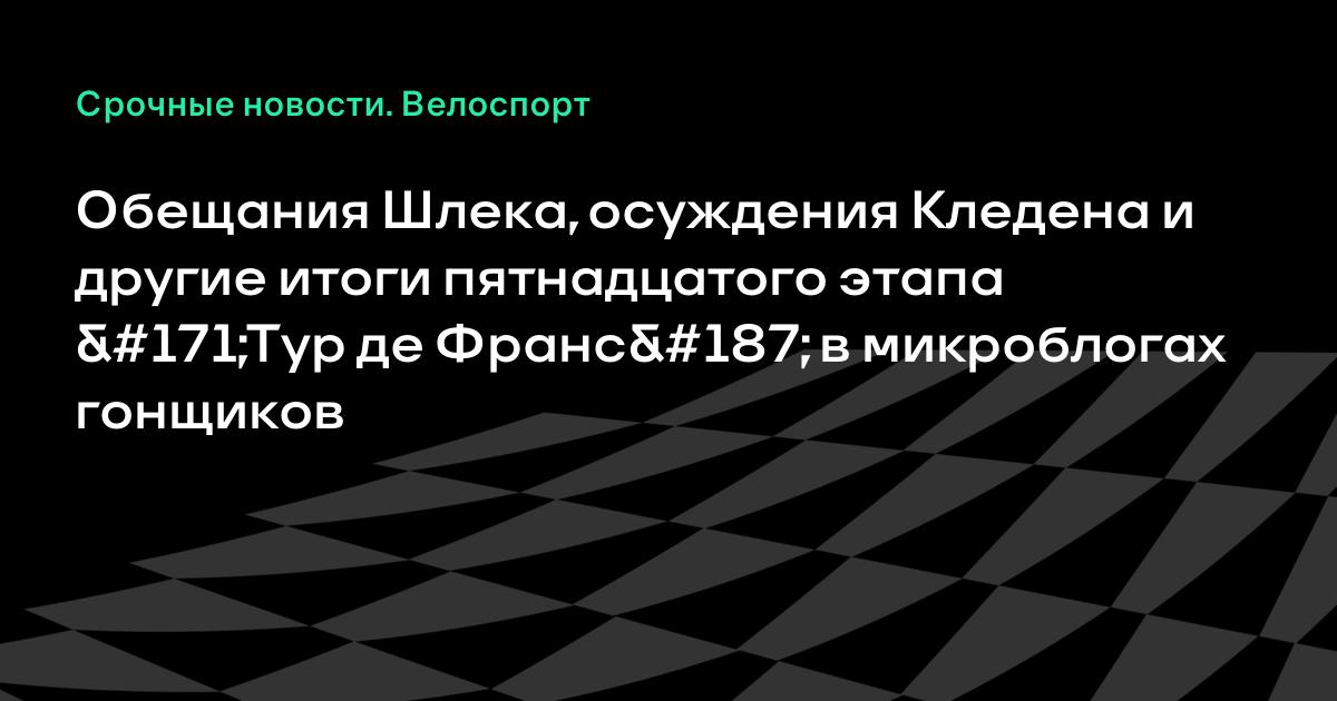 Обещания Шлека, осуждения Кледена и другие итоги пятнадцатого этапа «Тур де Франс» в микроблогах гонщиков