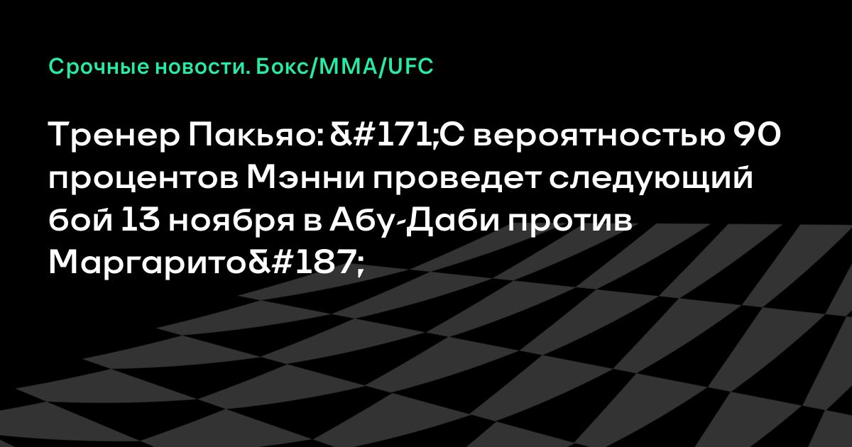 Тренер Пакьяо: «С вероятностью 90 процентов Мэнни проведет следующий бой 13 ноября в Абу-Даби против Маргарито»