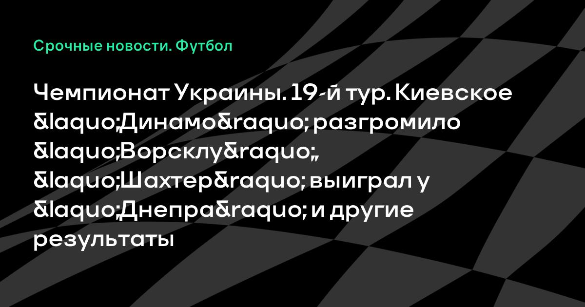Чемпионат Украины. 19-й тур. Киевское «Динамо» разгромило «Ворсклу», «Шахтер» выиграл у «Днепра» и другие результаты