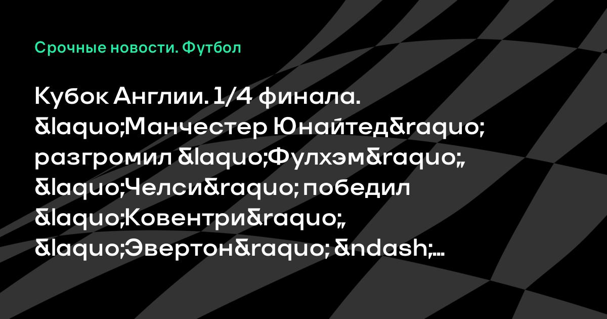 Кубок Англии. 1/4 финала. «Манчестер Юнайтед» разгромил «Фулхэм», «Челси» победил «Ковентри», «Эвертон» – «Мидлсбро»