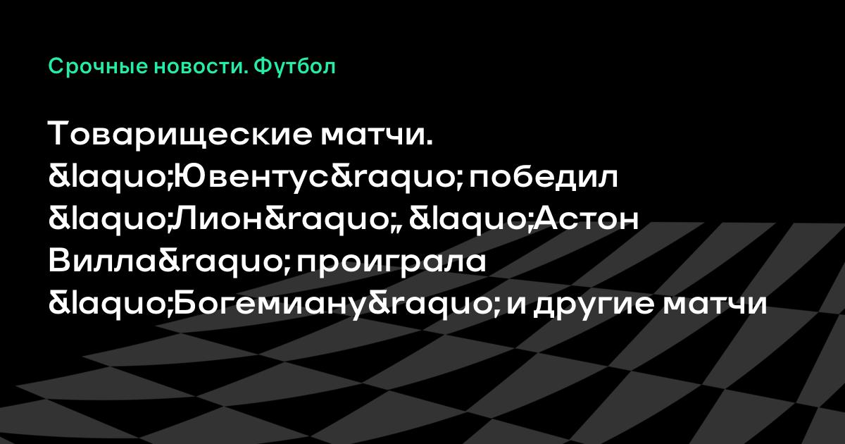 Товарищеские матчи. «Ювентус» победил «Лион», «Астон Вилла» проиграла «Богемиану» и другие матчи