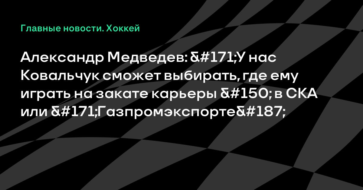 Александр Медведев: «У нас Ковальчук сможет выбирать, где ему играть на закате карьеры в СКА или «Газпромэкспорте»