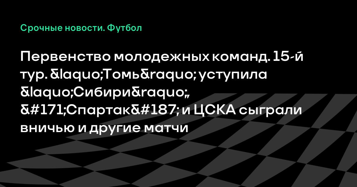 Первенство молодежных команд. 15-й тур. «Томь» уступила «Сибири», «Спартак» и ЦСКА сыграли вничью и другие матчи
