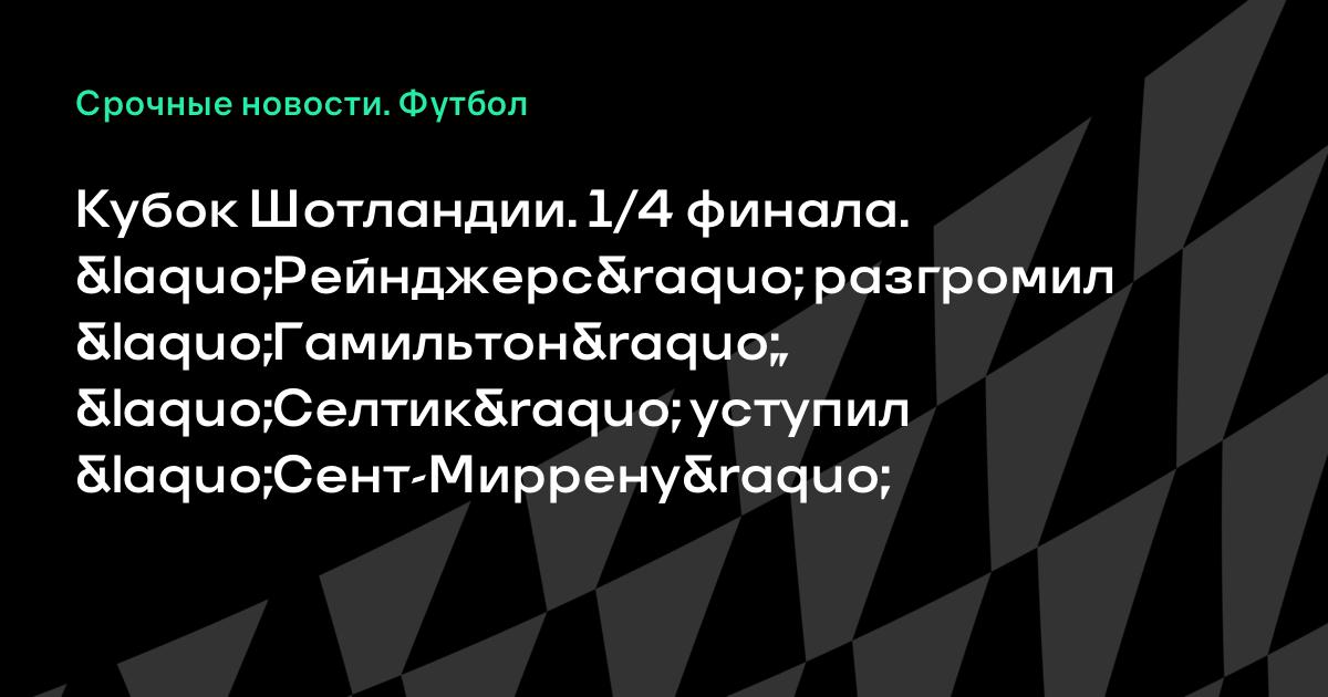 Кубок Шотландии. 1/4 финала. «Рейнджерс» разгромил «Гамильтон», «Селтик» уступил «Сент-Миррену»