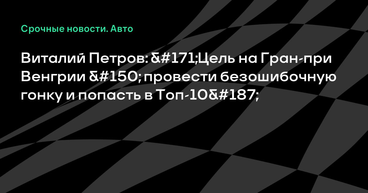 Виталий Петров: «Цель на Гран-при Венгрии провести безошибочную гонку и попасть в Топ-10»
