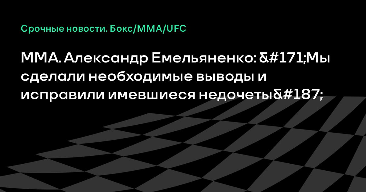 MMA. Александр Емельяненко: «Мы сделали необходимые выводы и исправили имевшиеся недочеты»