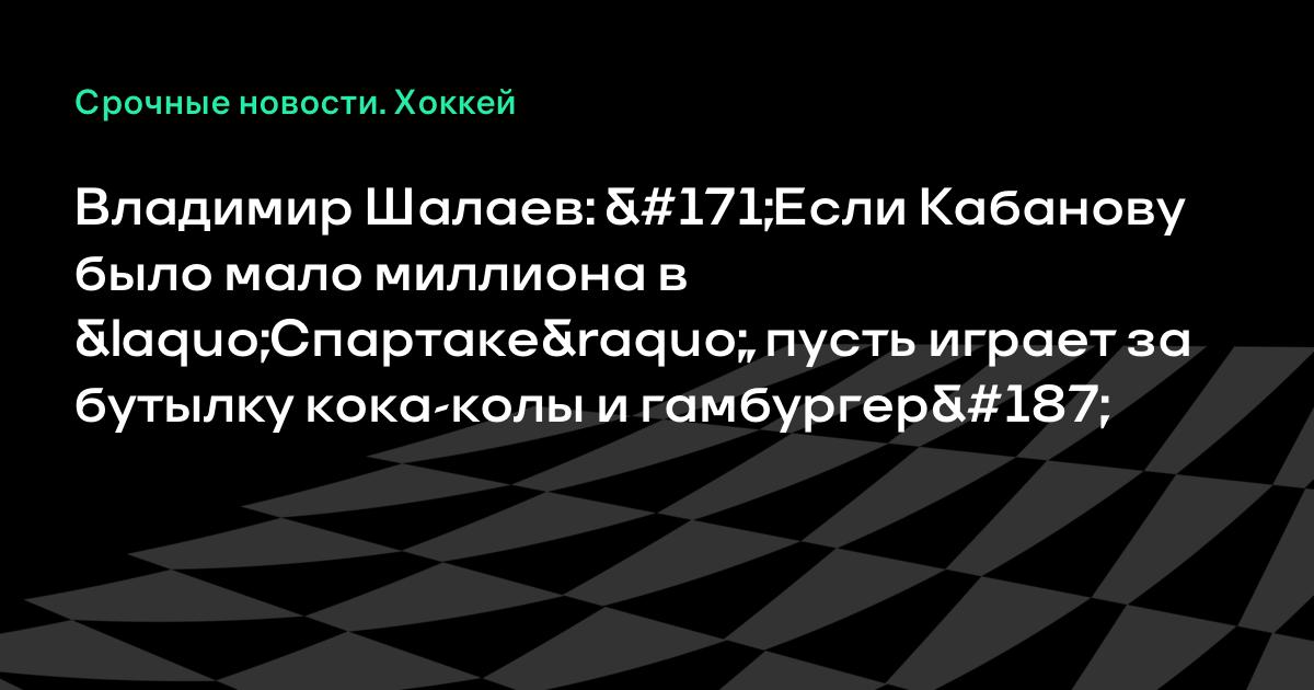 Конечно же, мы прекрасно понимаем, что многие игроки уезжают в НХЛ не из-за денег, а из-за желания играть в лучшей лиге мира. Но, как показывает практика, одного желания мало. Где сейчас тот же Кабанов? Ради бога, если ему было мало миллиона в «Спартаке», то пусть играет за бутылку кока-колы и гамбургер это его выбор», цитирует Шалаева «Спорт-Экспресс».
