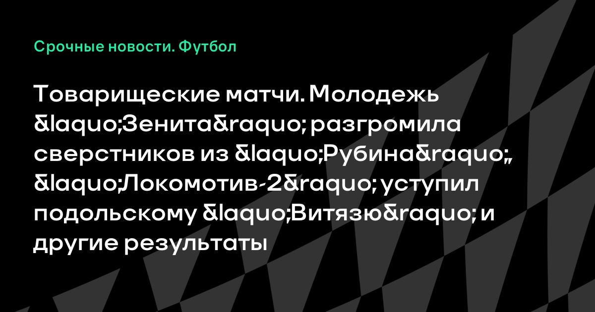 Товарищеские матчи. Молодежь «Зенита» разгромила сверстников из «Рубина», «Локомотив-2» уступил подольскому «Витязю» и другие результаты