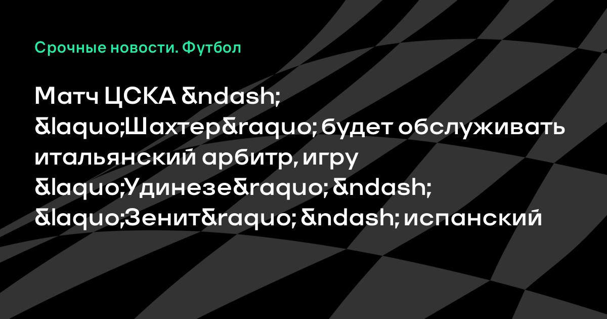 Матч ЦСКА – «Шахтер» будет обслуживать итальянский арбитр, игру «Удинезе» – «Зенит» – испанский