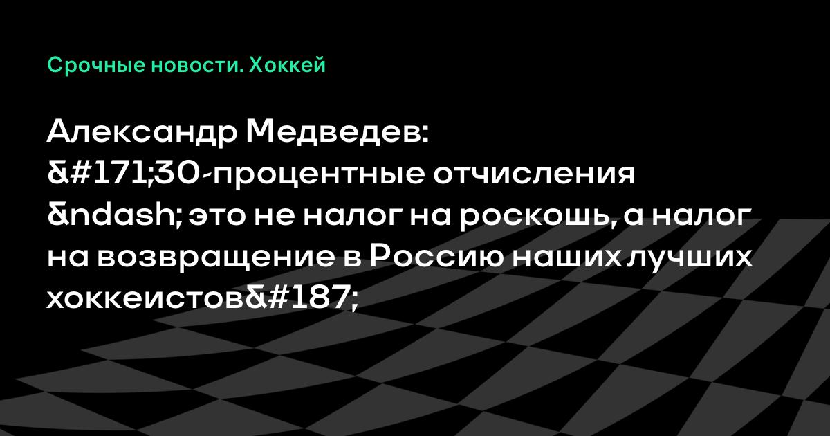 Клубы, превысившие лимит, заплатят 30% от превышения. Кто-то называет это налогом на роскошь. А я считаю, это не налог на роскошь, а фактически налог на возвращение в Россию наших лучших хоккеистов», – приводит слова Медведева «РИА Новости».