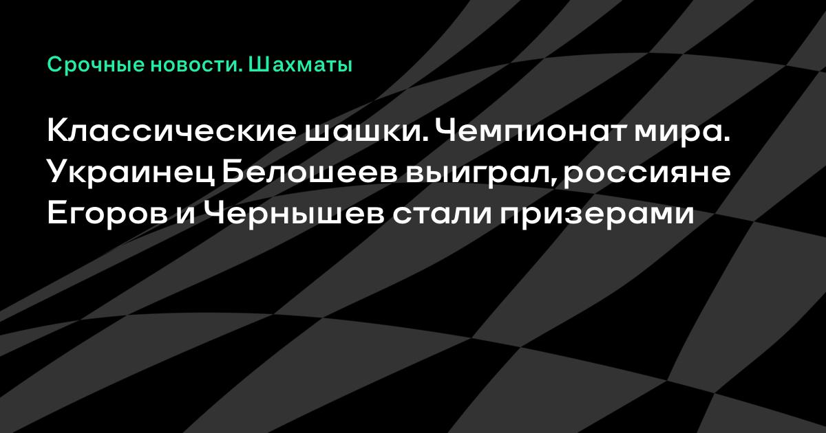 Классические шашки. Чемпионат мира. Украинец Белошеев выиграл, россияне Егоров и Чернышев стали призерами