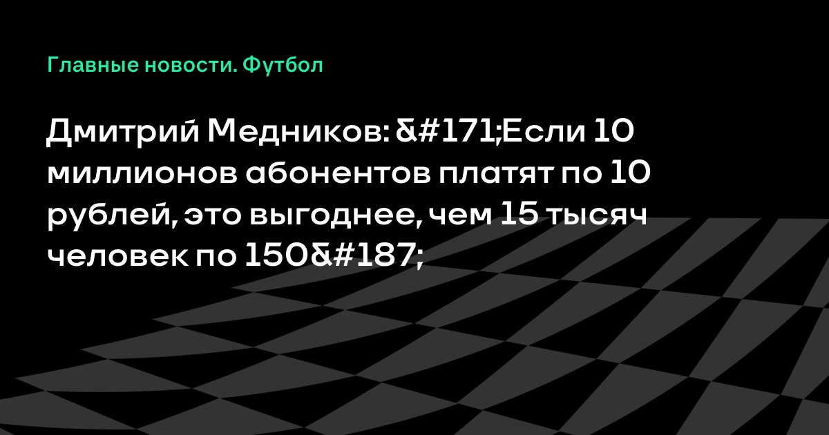Для нас этот эксперимент интересен и в связи с нашими предложениями по российскому футболу. Мы считаем, что наша модель позволяет зарабатывать клубам без ущерба для любителей футбола, а также полезна для телевидения в плане развития цифровых услуг. Это бизнес-проект, и мы заинтересованы в его абсолютной окупаемости и прибыльности. Сейчас подтвержденных контрактов уже достаточно, чтобы гарантировать, что в первые недели мы будем в плюсе. Если 10 миллионов абонентов платят, условно, по 10 рублей, это выгоднее, чем 15 тысяч человек по 150 рублей», – приводит слова Медникова «Спорт-Экспресс».
