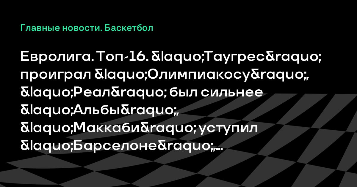 Евролига. Топ-16. «Таугрес» проиграл «Олимпиакосу», «Реал» был сильнее «Альбы», «Маккаби» уступил «Барселоне», «Цибона» – ЦСКА и другие результаты