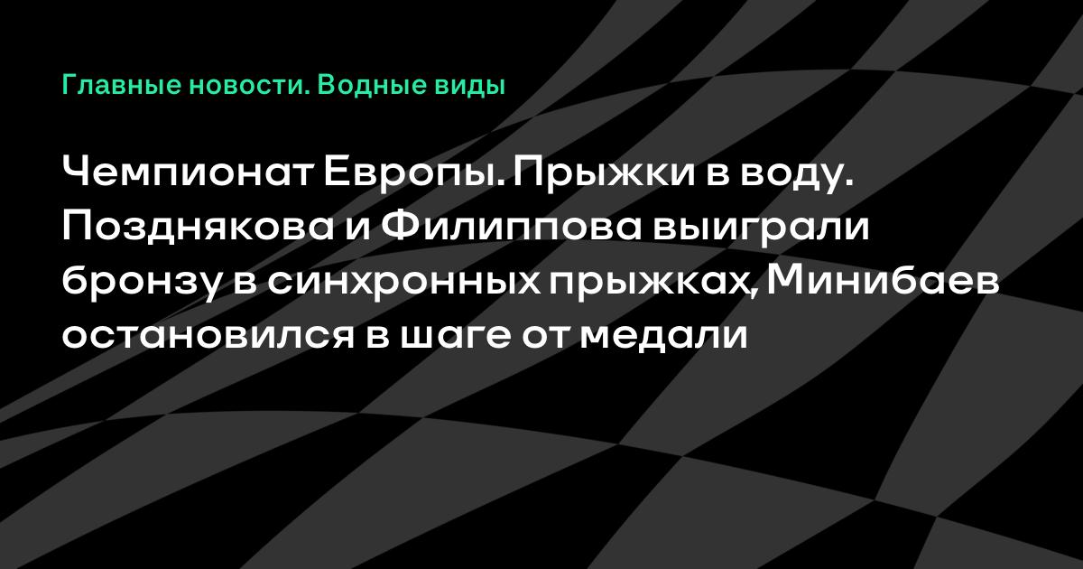 Чемпионат Европы. Прыжки в воду. Позднякова и Филиппова выиграли бронзу в синхронных прыжках, Минибаев остановился в шаге от медали