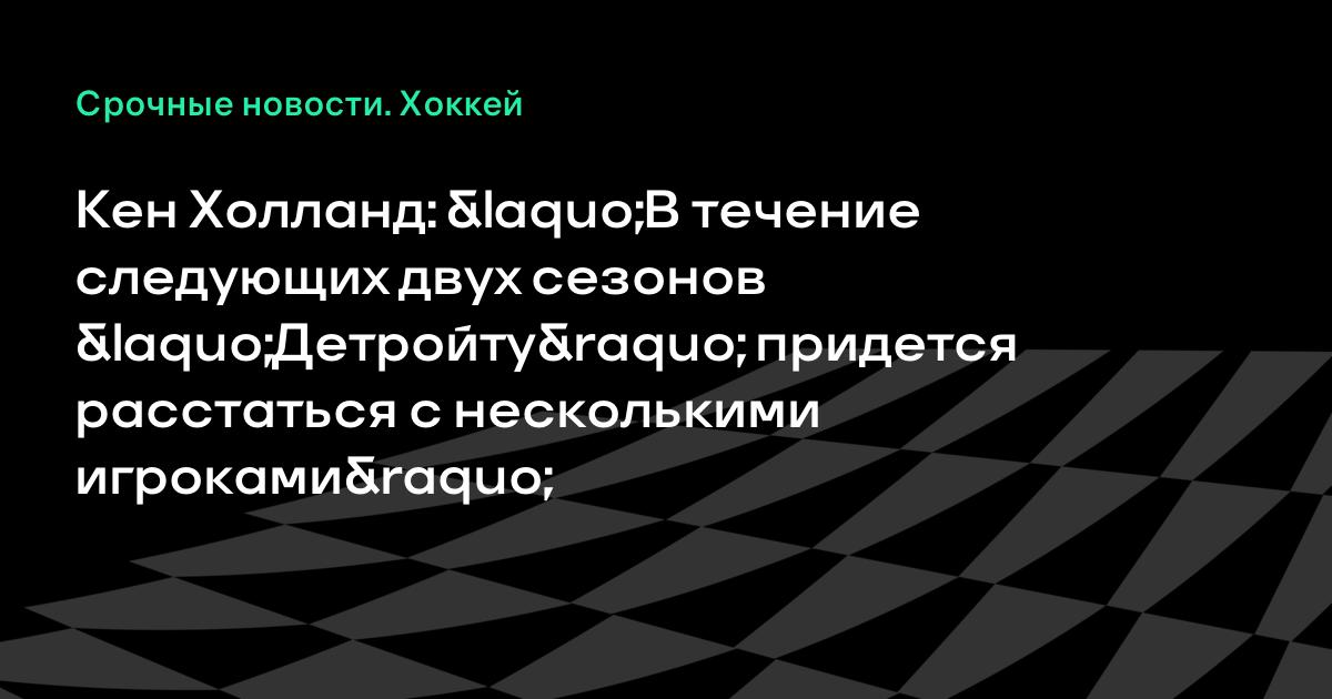Кен Холланд: «В течение следующих двух сезонов «Детройту» придется расстаться с несколькими игроками»