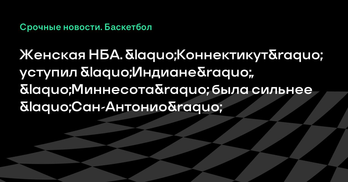Женская НБА. «Коннектикут» уступил «Индиане», «Миннесота» была сильнее «Сан-Антонио»