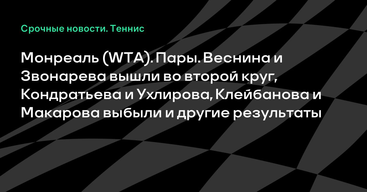 Монреаль (WTA). Пары. Веснина и Звонарева вышли во второй круг, Кондратьева и Ухлирова, Клейбанова и Макарова выбыли и другие результаты