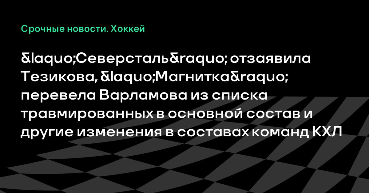 «Северсталь» отзаявила Тезикова, «Магнитка» перевела Варламова из списка травмированных в основной состав и другие изменения в составах команд КХЛ