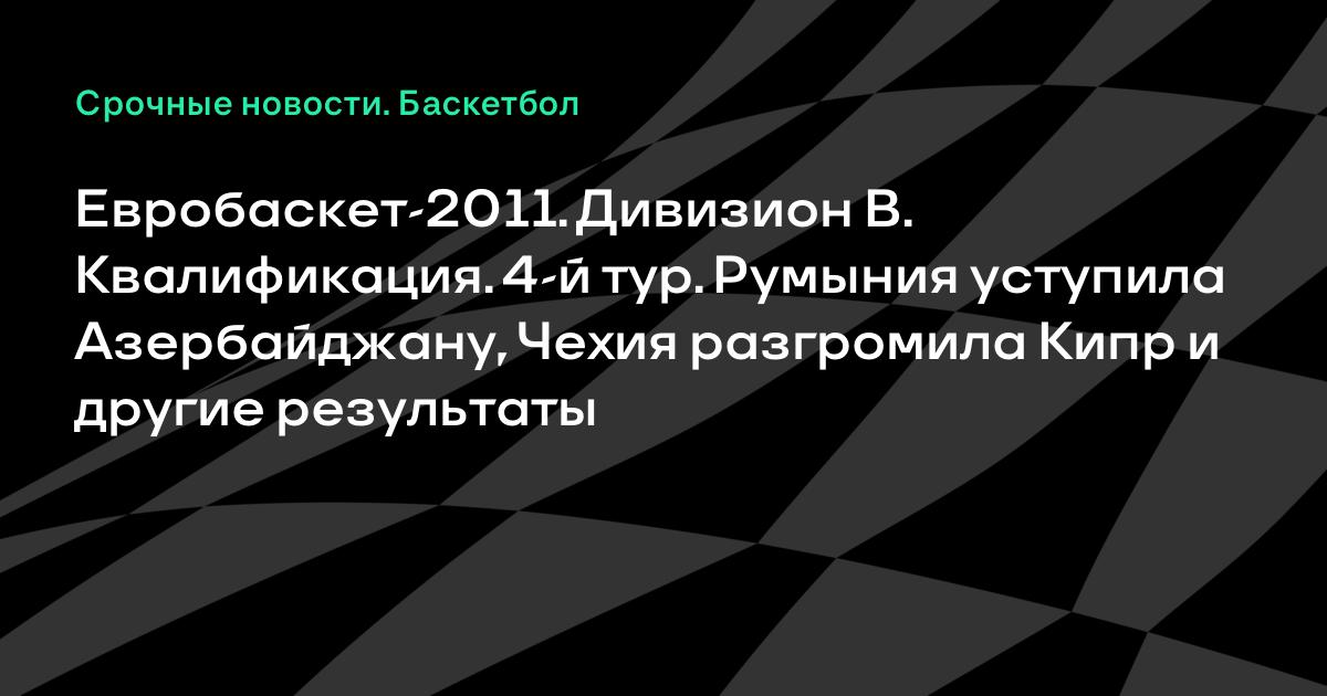 Евробаскет-2011. Дивизион В. Квалификация. 4-й тур. Румыния уступила Азербайджану, Чехия разгромила Кипр и другие результаты
