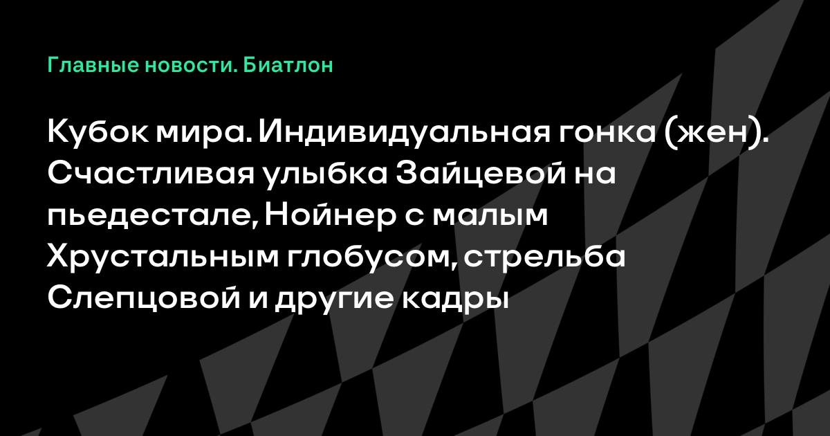 Кубок мира. Индивидуальная гонка (жен). Счастливая улыбка Зайцевой на пьедестале, Нойнер с малым Хрустальным глобусом, стрельба Слепцовой и другие кадры