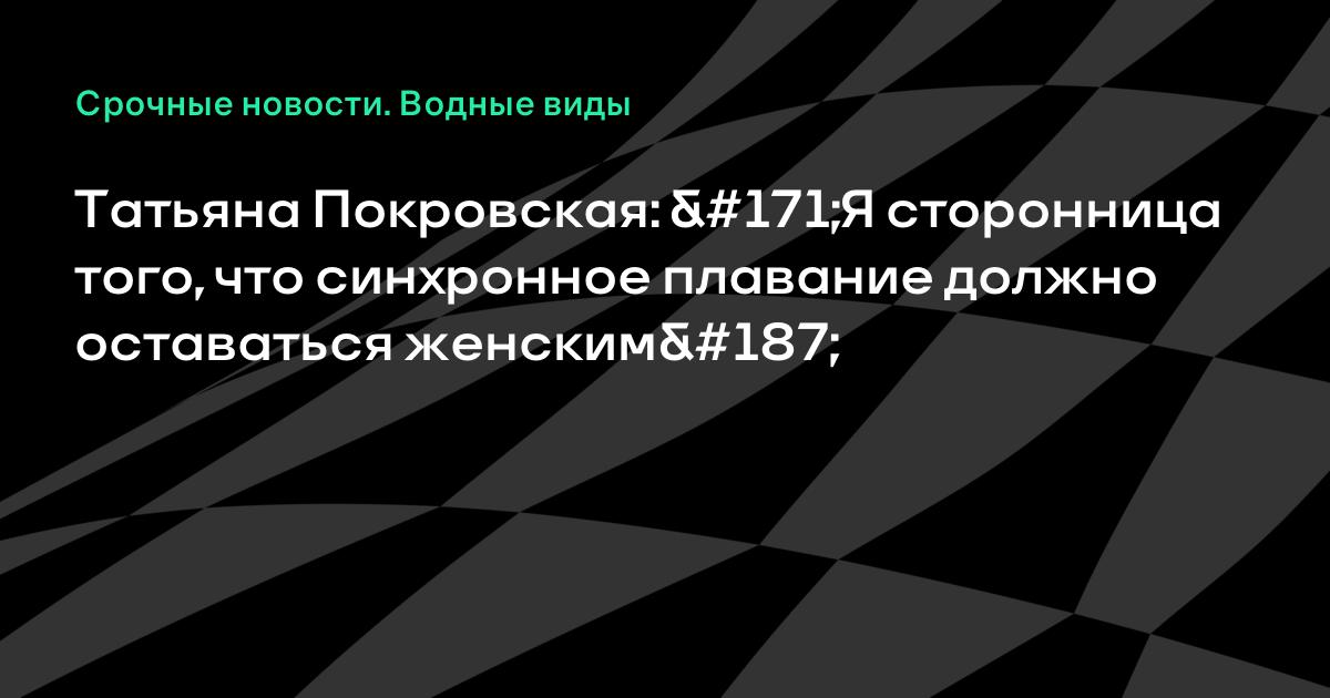 Татьяна Покровская: «Я сторонница того, что синхронное плавание должно оставаться женским»