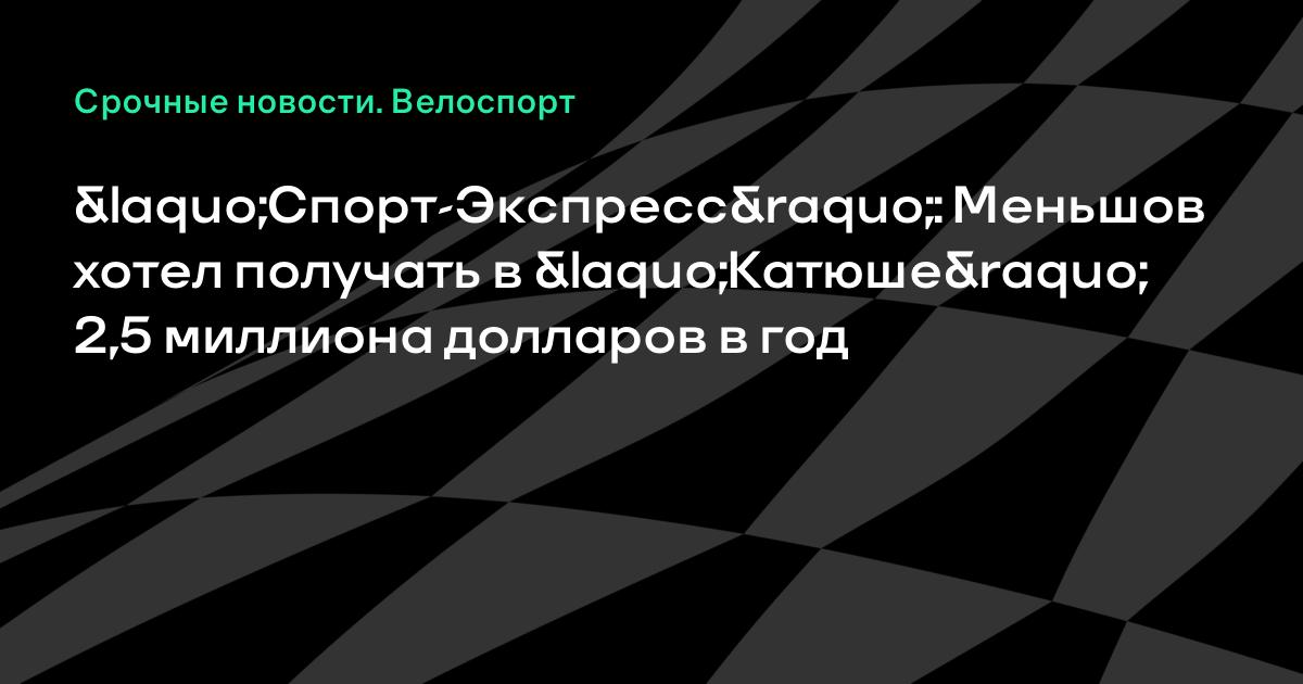 «Спорт-Экспресс»: Меньшов хотел получать в «Катюше» 2,5 миллиона долларов в год
