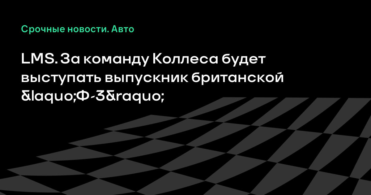 LMS. За команду Коллеса будет выступать выпускник британской «Ф-3»