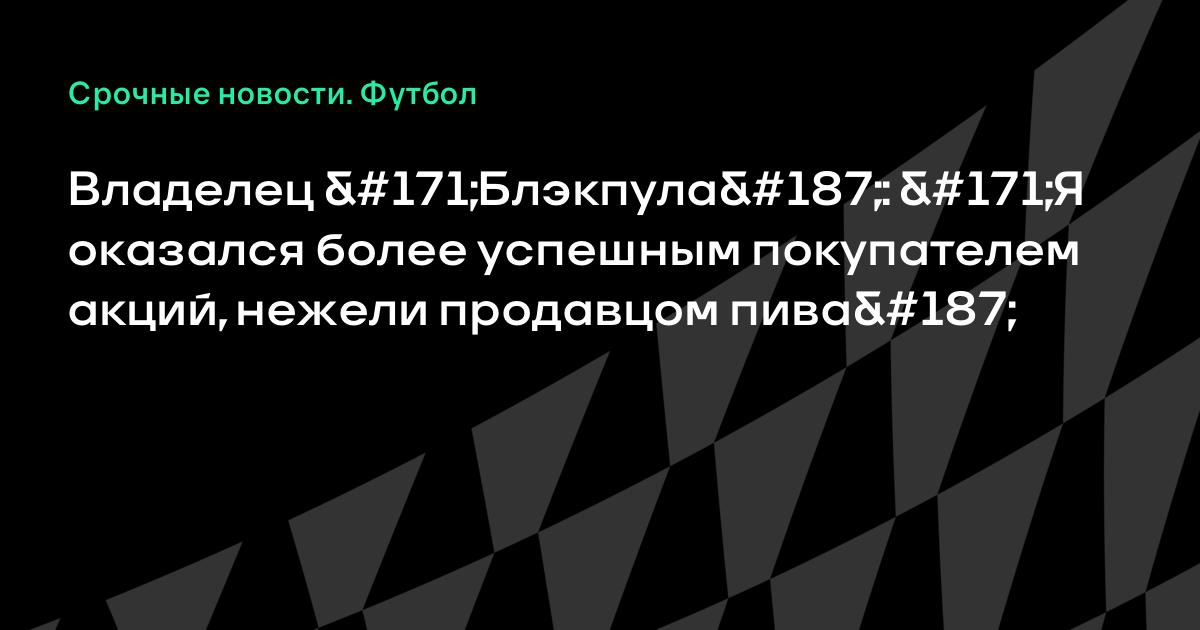 Владелец «Блэкпула»: «Я оказался более успешным покупателем акций, нежели продавцом пива»