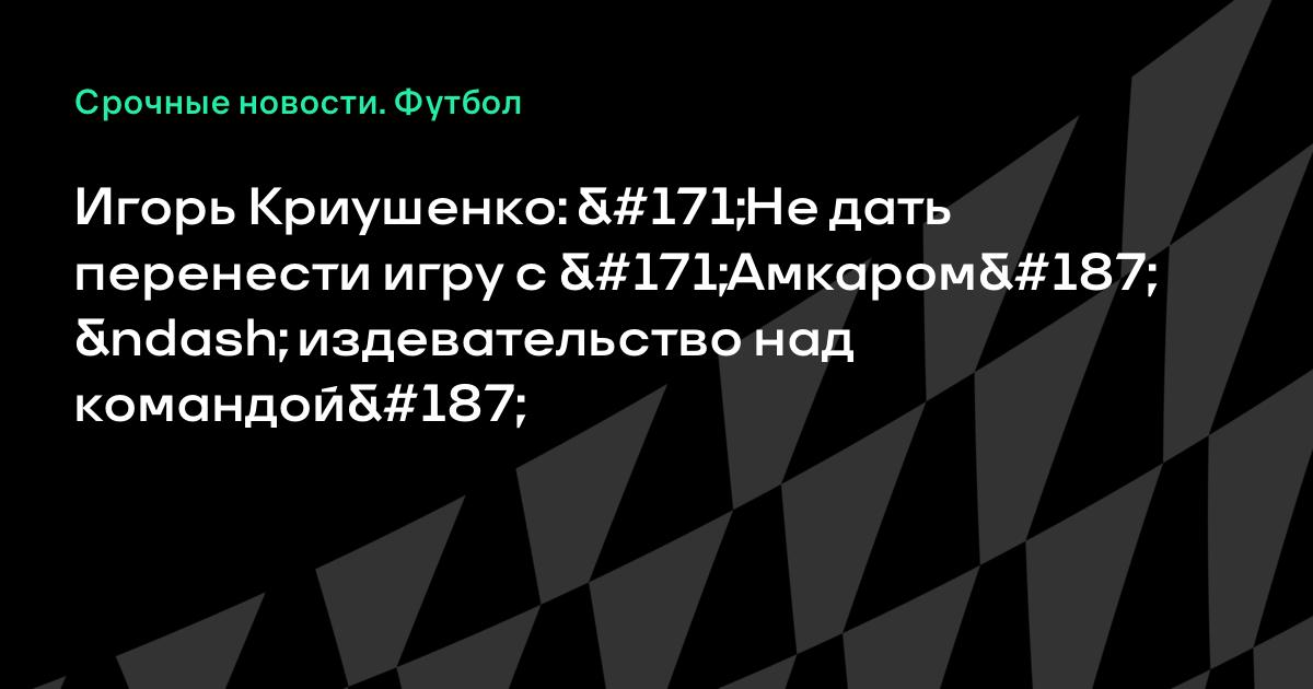 Игорь Криушенко: «Не дать перенести игру с «Амкаром» – издевательство над командой»