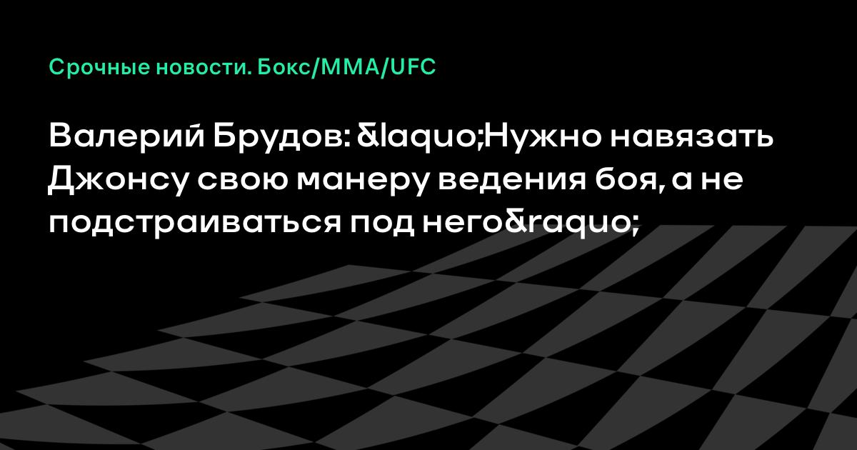 «Но сейчас надо много трудиться и настраиваться на победу, подчеркнул Брудов. Главное в поединке навязать сопернику свою манеру ведения боя, а не подстраиваться под него. Если подстроишься под Джонса выиграть будет очень сложно», заявил Брудов в интервью РИА Новости.