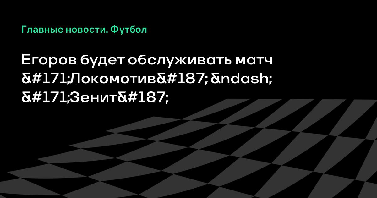 Егоров будет обслуживать матч «Локомотив» – «Зенит»