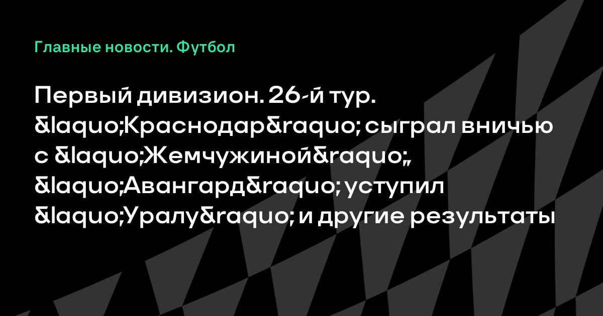 Первый дивизион. 26-й тур. «Краснодар» сыграл вничью с «Жемчужиной», «Авангард» уступил «Уралу» и другие результаты