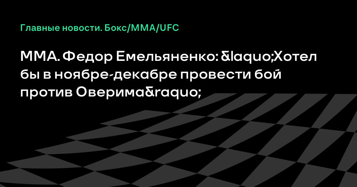 MMA. Федор Емельяненко: «Хотел бы в ноябре-декабре провести бой против Оверима»