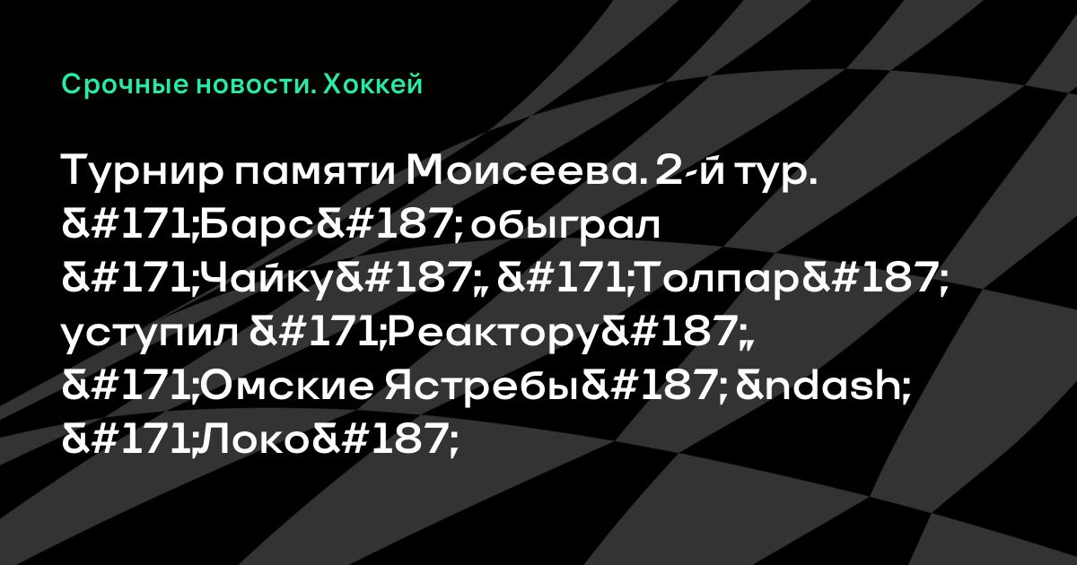 Турнир памяти Моисеева. 2-й тур. «Барс» обыграл «Чайку», «Толпар» уступил «Реактору», «Омские Ястребы» – «Локо»