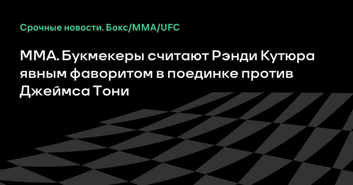 Букмекеры считают бывшего чемпиона UFC в двух весовых категориях Рэнди Кутюра явным фаворитом в поединке против бывшего чемпиона мира по боксу Джеймса Тони, который состоится 28 августа в рамках шоу UFC 118. Напомним, для Тони этот поединок станет дебютным в MMA.