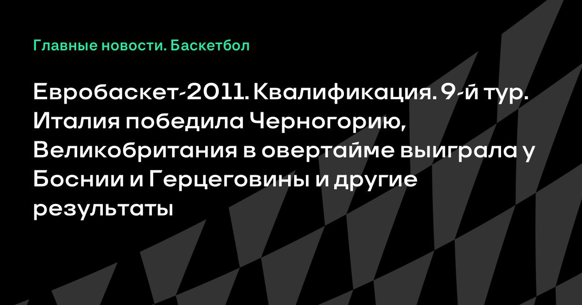 Евробаскет-2011. Квалификация. 9-й тур. Италия победила Черногорию, Великобритания в овертайме выиграла у Боснии и Герцеговины и другие результаты