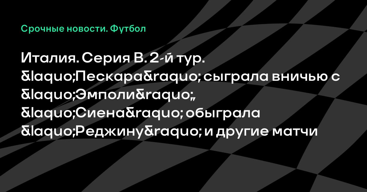 Италия. Серия В. 2-й тур. «Пескара» сыграла вничью с «Эмполи», «Сиена» обыграла «Реджину» и другие матчи
