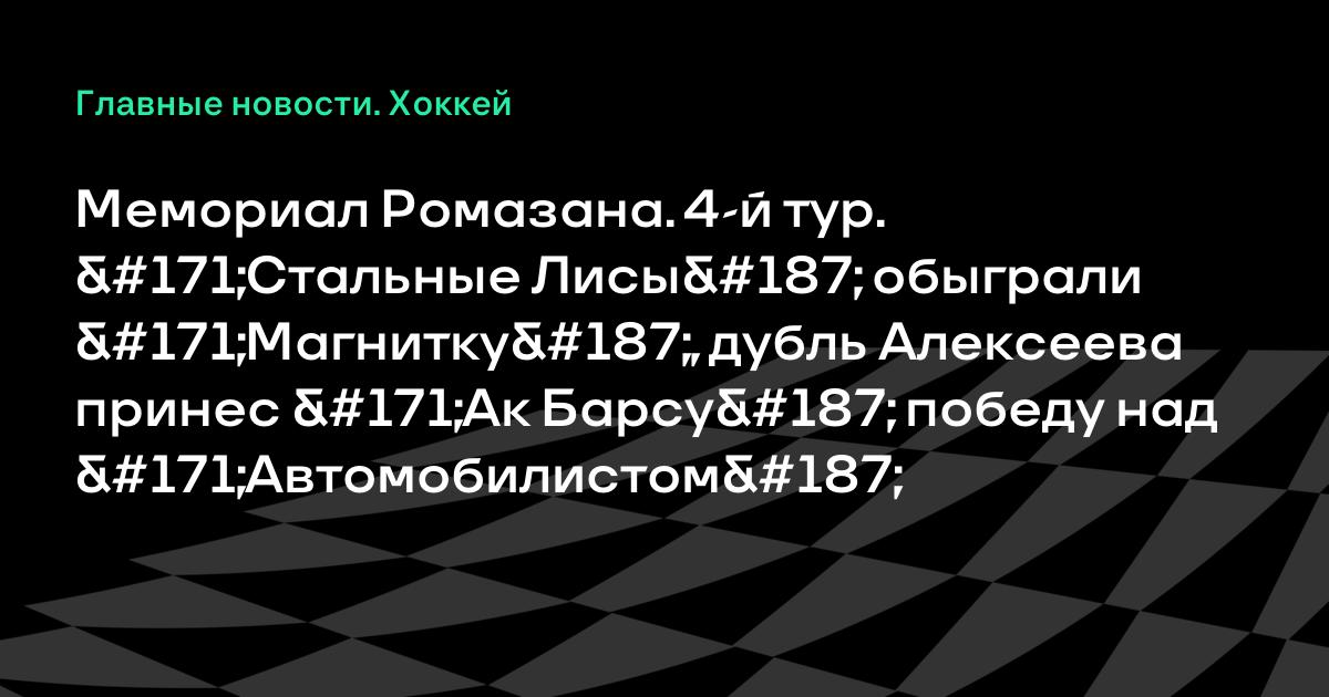 Мемориал Ромазана. 4-й тур. «Стальные Лисы» обыграли «Магнитку», дубль Алексеева принес «Ак Барсу» победу над «Автомобилистом»